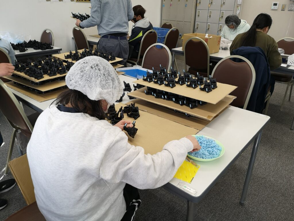 Cocoすてっぷでは、部品の組み立てやシール貼り、商品の封入や分別作業、外で体を動かす仕事など、いろんな作業にチャレンジすることができます。